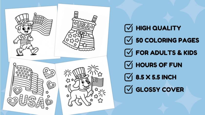 The book is sized for comfortable coloring and suitable for markers, gel pens, crayons, or colored pencils. Enjoy creative time together and celebrate the symbols of freedom in every shade.