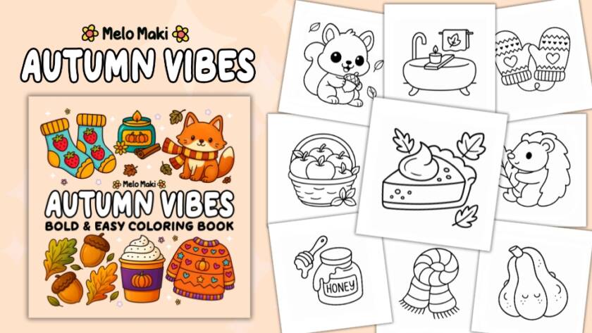 Dive into playful, stress-free creativity with Autumn Vibes coloring book. Every page invites kids, teens, and grown-ups alike to explore a cozy fall world filled with smiling woodland creatures, plump pumpkins, steaming mugs, and drifting leaves.