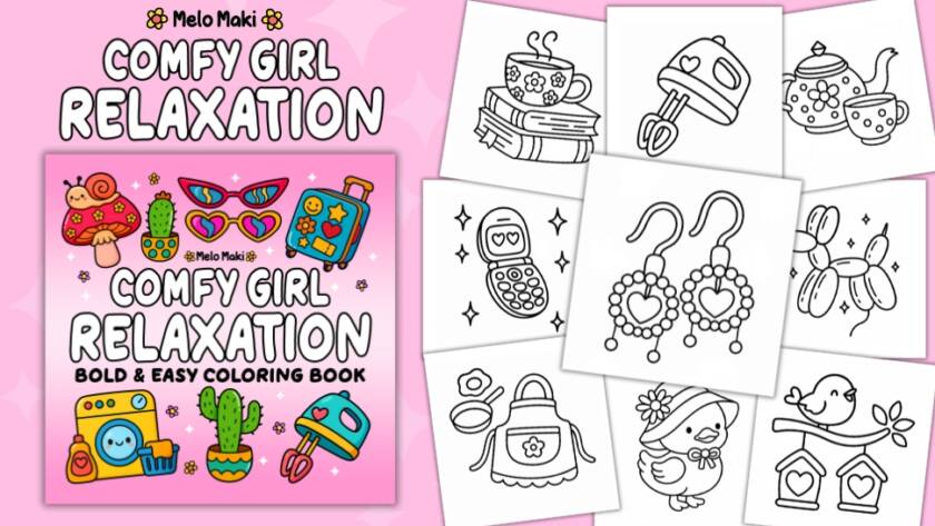 Inside you’ll find a delightful mix of cozy objects, blooming flowers, cute objects, tasty treats, and more, great for slow afternoons with your favorite markers or pencils. Whether you color to recharge or just for fun, this book offers a gentle, feel-good escape.
