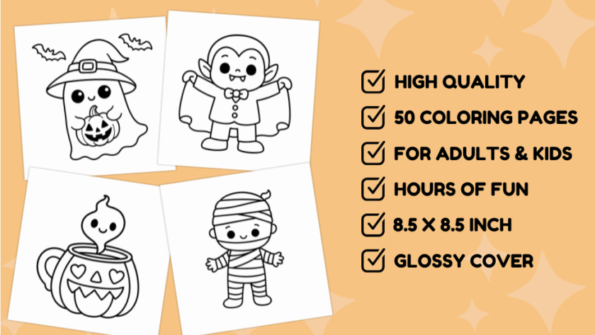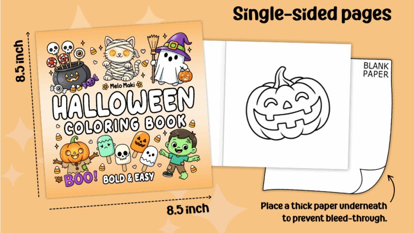 Step into a cozy, pumpkin-bright Halloween vibe with 50 cute, cute and spooky illustrations made for relaxing, no-stress coloring.